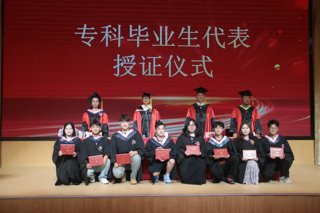 学校领导为毕业生代表颁发毕业证书。毕业生们端举毕业证书,意气风发、笑容灿烂,享受属于自己的庄严神圣时刻。