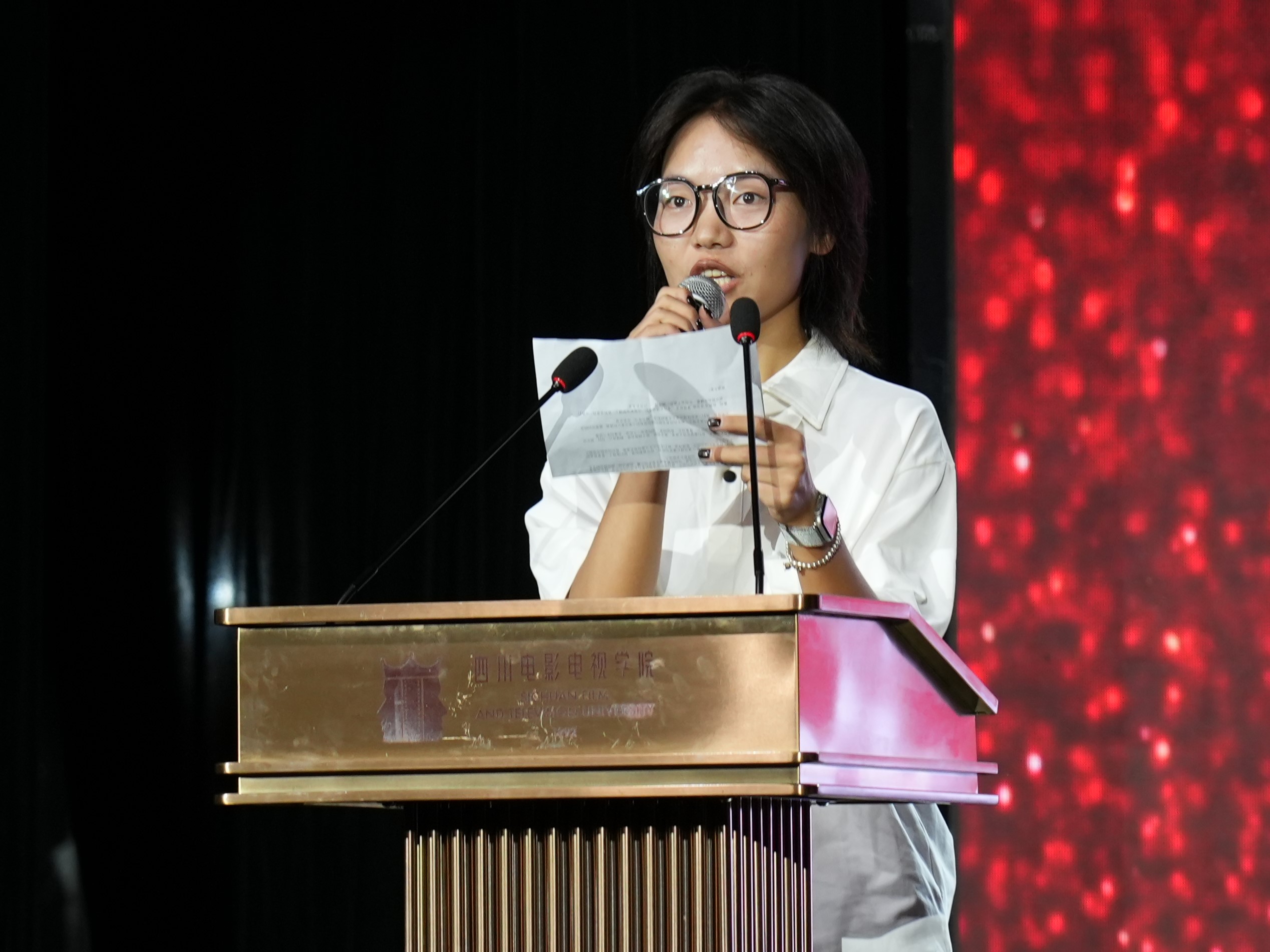 2024级音乐表演本科6班沙马拖千作为新生代表发言。她表示从家乡大凉山到川影仅仅412公里的距离,但是她却走了整整12年。一方面她心怀感恩,感恩自己对音乐的热情,感恩一路有良师益友的陪伴;一方面更加珍惜来之不易的机会,未来的求学之路会努力学习。同时代表音乐学院2024级全体新生表达了对未来学习生活的憧憬和决心,为新征程开好局、起好步。