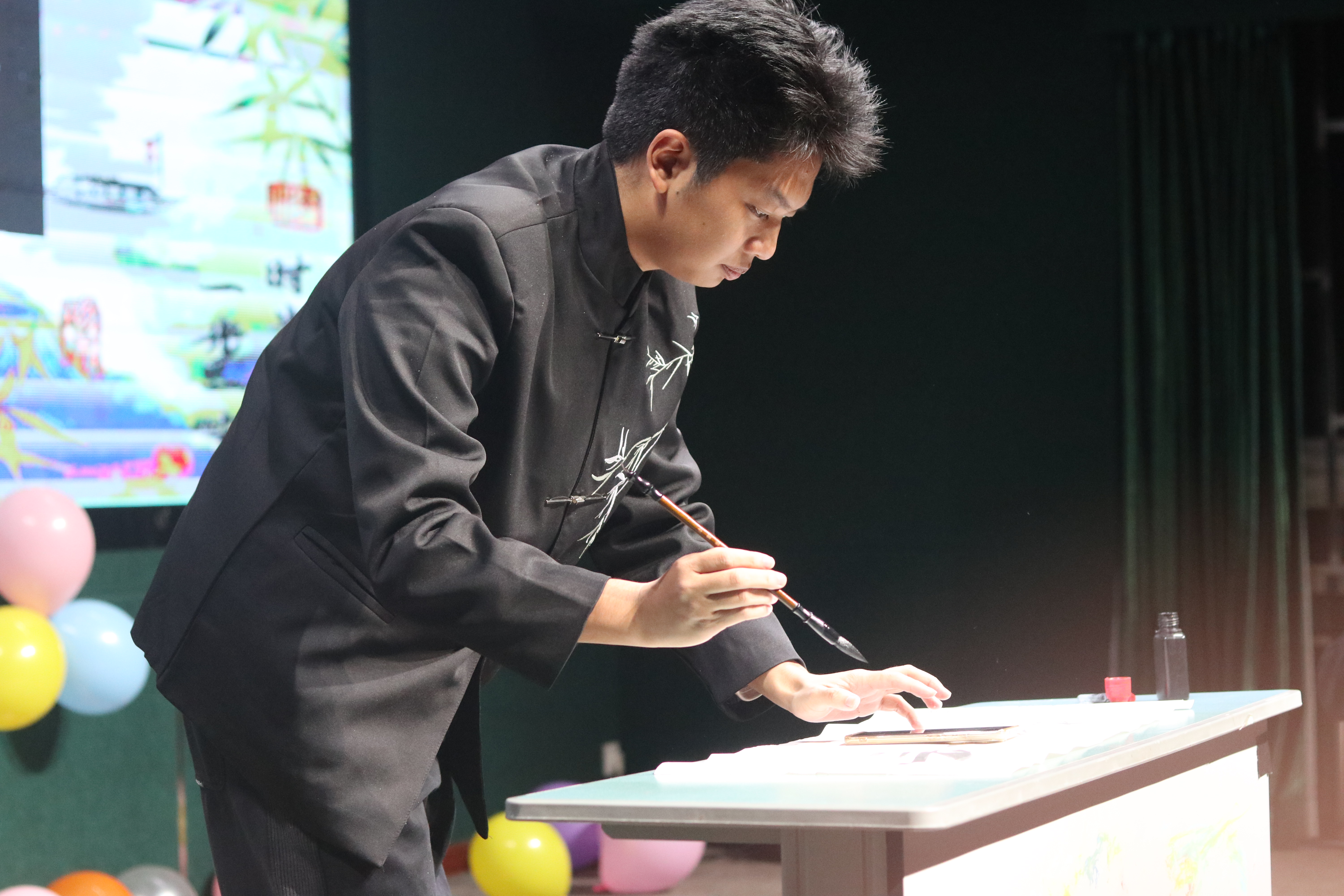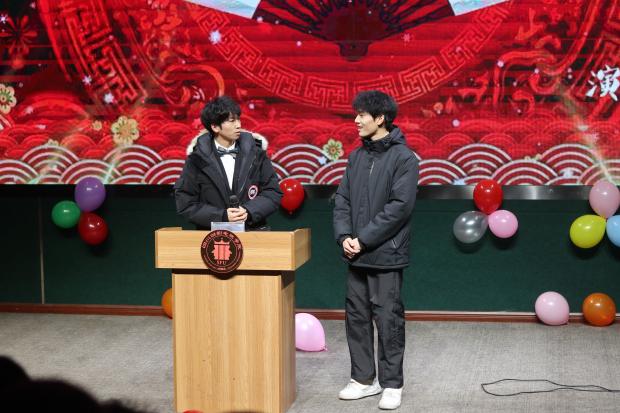 热闹非凡的晚会上,多才多艺的学子们纷纷登台,将各自的才华展现得淋漓尽致,为观众编织了一场视觉与听觉的盛宴。晚会的伊始,便由陈阳伶与罗叶萱同学携手,以一曲情景歌舞《金风玉露》瞬间点燃了现场的气氛,为晚会奠定了活力四射的基调;紧接着,贺正强同学,以一管竹笛,吹奏出悠扬而深情的旋律,将晚会现场变成了一片诗意的海洋;正当大家沉浸在这份宁静与美好之中时,贺正强与陈利明合作的相声表演《我心永恒》适时登场,如同一股清新的风,瞬间吹散了先前的静谧,带来了阵阵欢声笑语。他们幽默风趣的表演,不仅展现了相声艺术的独特魅力,也让现场的气氛变得更加热烈而温馨,每一个笑点都精准地触动了观众的心弦。此外,晚会还迎来了一抹独特的文化风景——张佳熙同学带来的书法展示,不仅展示了中国汉字的博大精深,也让在场的每一个人深刻感受到了传统文化的独特韵味与无穷魅力。