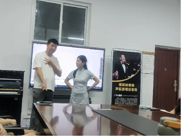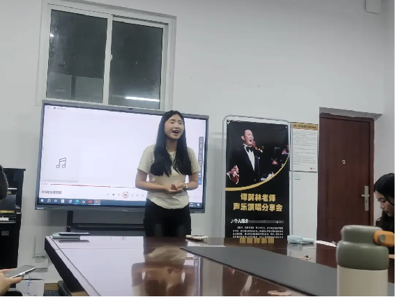 活动现场,谭老师以深入浅出的讲解,将声乐艺术的精妙之处娓娓道来。从气息的控制技巧到情感表达的细腻拿捏,每一个知识点都融入了谭老师多年舞台与教学的心血结晶。为了让大家更直观感受,谭老师亲自示范的片段,时而高亢激昂,时而婉转低回的歌声,瞬间点燃全场热情心,将声乐艺术的魅力展现得淋漓尽致。