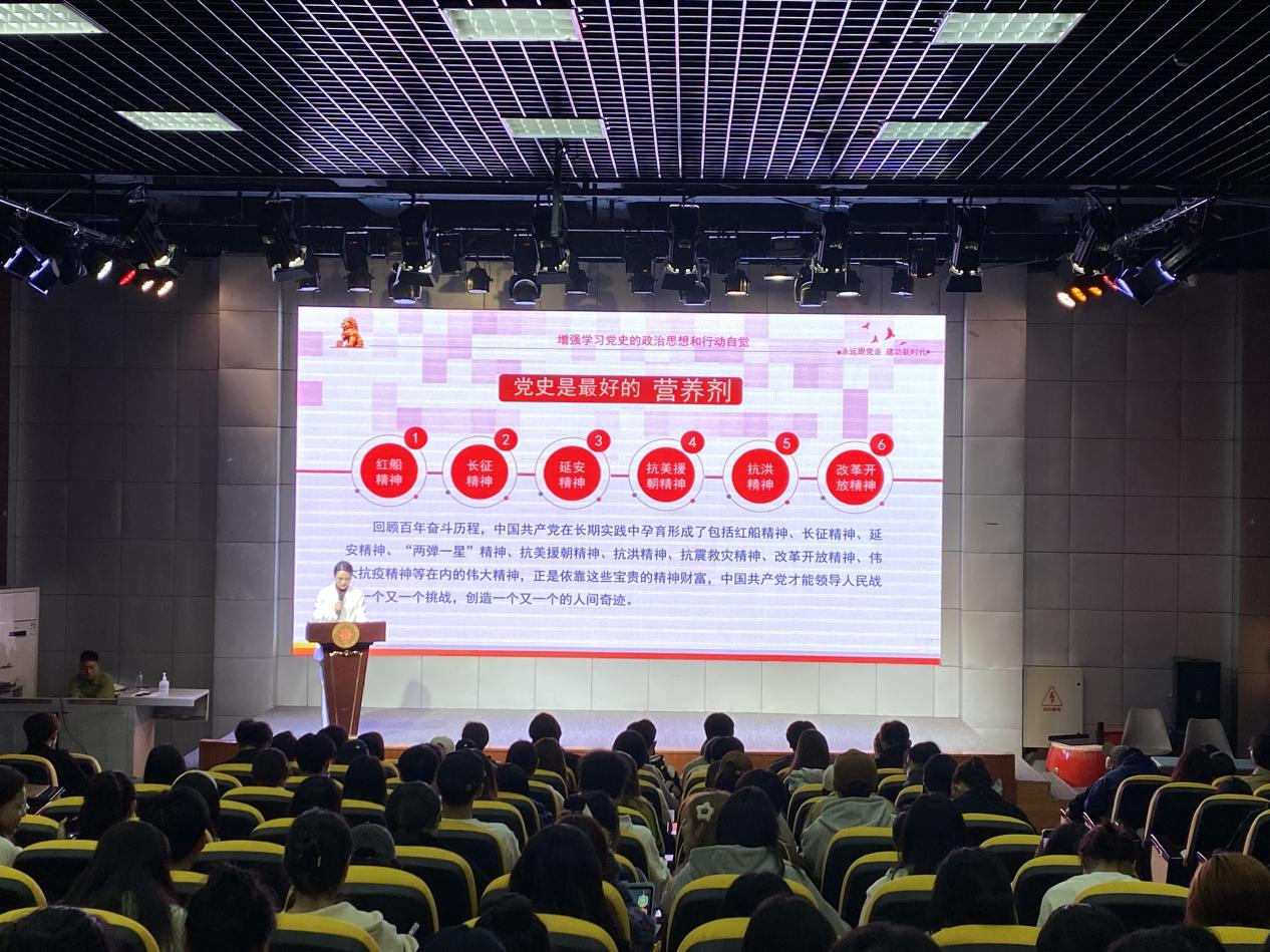 接着他围绕“继往开来,全党守初心”、“独辟蹊径,道路向光明”、“守正创新,理论新境界 ”、“科教兴国,青年勇担当”这四个主题对党的二十大报告展开讲解。