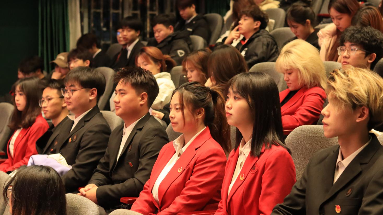 会议现场气氛庄重而热烈,随着音乐声响起,新一届团委学生会全体成员起立,齐声高唱共青团团歌。歌声激昂、旋律优美,充分展现了音乐青年学子的蓬勃朝气和坚定信念。