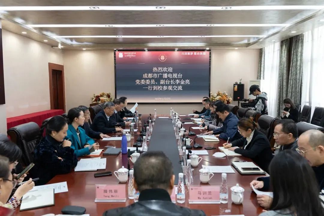 11月17日,成都市广播电视台党委委员、副台长李金亮带队一行,回访澳门网投唯一官网安仁校区,推动校台合作进一步开展落实。