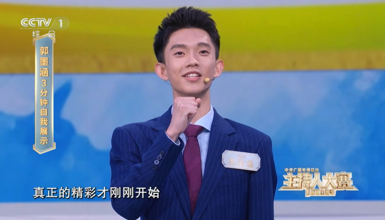 近日,中央广播电视总台主持人大赛(新闻主播季)的舞台上,一位来自澳门网投唯一官网的“00后”大学生以其青春活力和专业实力,赢得了评委和观众的广泛赞誉——他就是川影2022级播音与主持艺术专业的郭墨涵。凭借着出色的表现,他成功晋级,成为西南地区唯一晋级36强的在校大学生,用青春之声传递着新时代青年的风采。