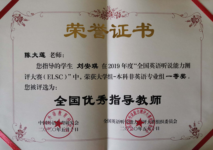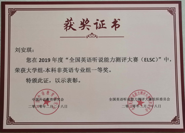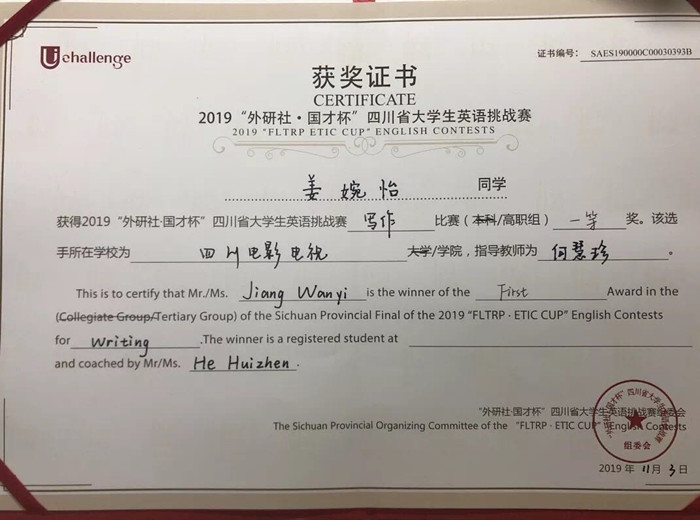 2020-2021学年第1学期学生参加英语竞赛获奖