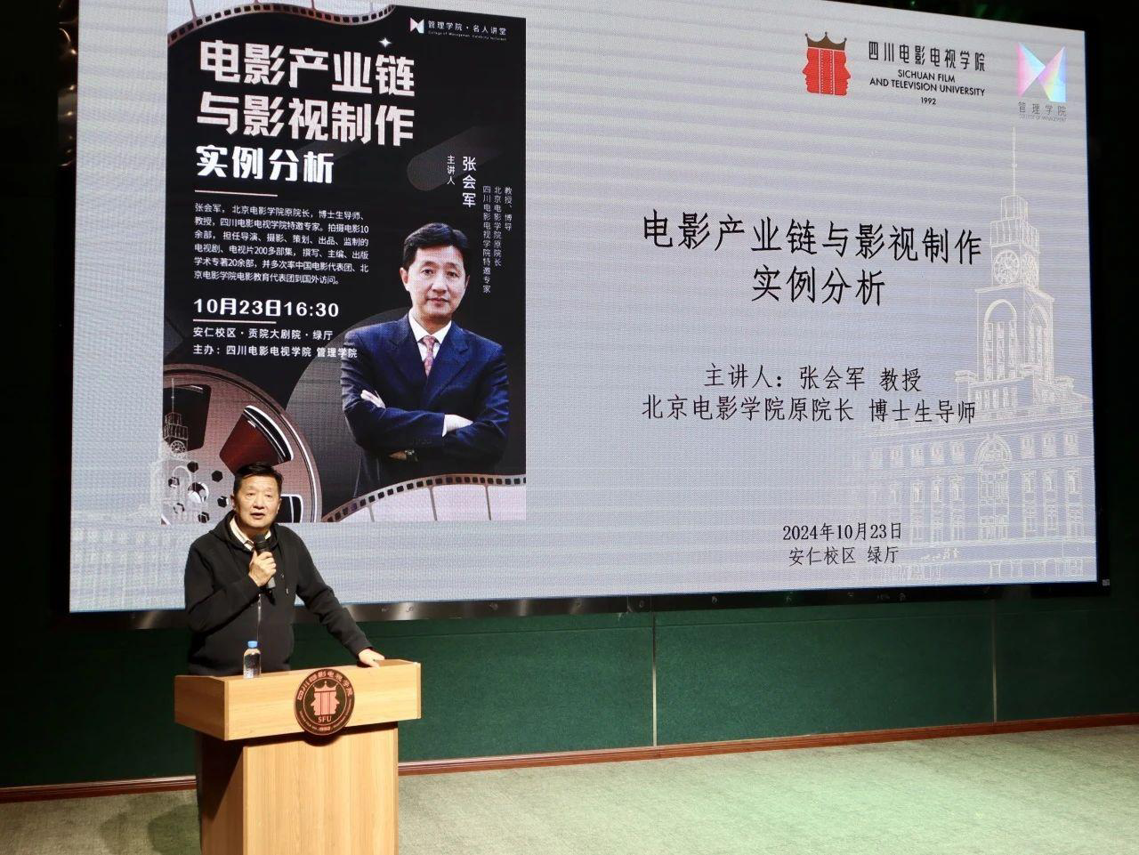 一叶知秋至,霜降感知寒。10月23日周三16:30位于安仁校区大剧院绿厅,北京电影学院原院长,博士生导师张会军教授同黄娟院长,张肖潇老师和全体艺术管理专业学生以及部分文产专业学生共赴“电影产业链及影视制作实例分析”的探索之旅,一同揭开电影艺术的神秘面纱,感悟行业领袖的深刻见解。