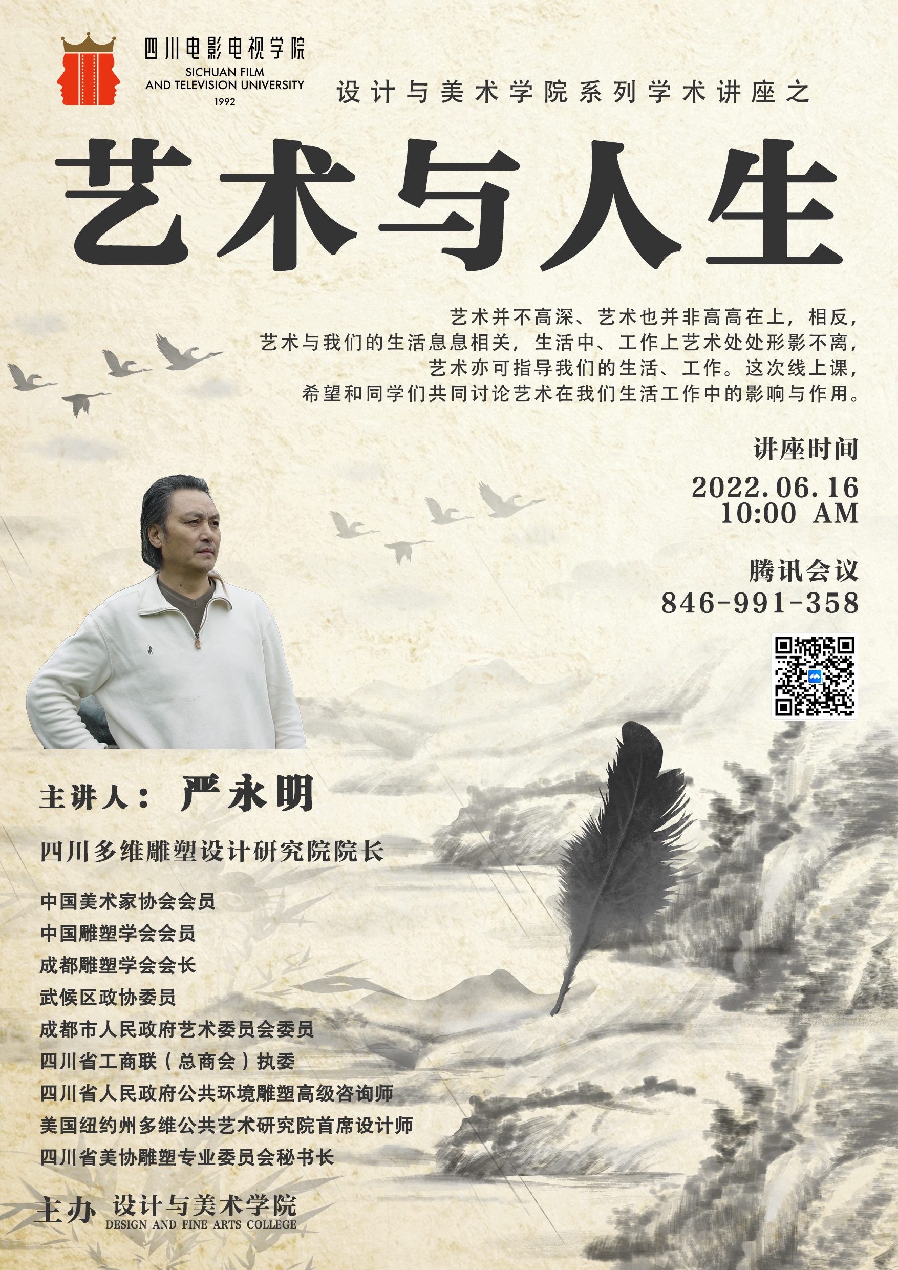 澳门网投唯一官网设计与美术学院系列讲座主讲人:严永明讲座题目《艺术与人生》讲座时间:2022年6月16日10:00腾讯会议:846991358主讲人简介:严永明先生是我国职业雕塑家,国家资格证0545号。现任中国美术家协会会员、中国雕塑学会会员、四川省人民政府公共环境雕塑高级咨询师、美国纽约州多维公共艺术研究院首席设计师...