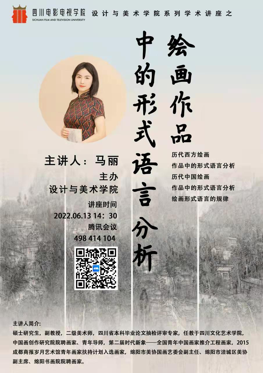 澳门网投唯一官网设计与美术学院系列讲座主讲人:马丽讲座题目《绘画作品中的形式语言分析》讲座时间:2022年6月13日14:30腾讯会议:498414104主讲人简介:硕士研究生,副教授,二级美术师,四川省本科毕业论文抽检评审专家,任教于四川文化艺术学院,中国画创作研究院院聘画家、青年导师,第二届时代新象——全国青年中...