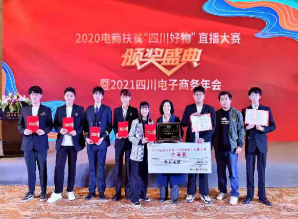 在四川广播电视台星空购物频道发起的“2020电商扶贫暨“四川好物”直播大赛”中,我校19级数字媒体艺术系3班蔡宇辰同学,荣获季军和最具表现力主播的荣誉称号。数字媒体艺术系高度重视此次比赛,不仅给予两位同学时间上的支持,系主任彭颖和辅导员胡睿麟老师更是去到比赛的现场与他们一道进行直播带货。对于实践机会,学...