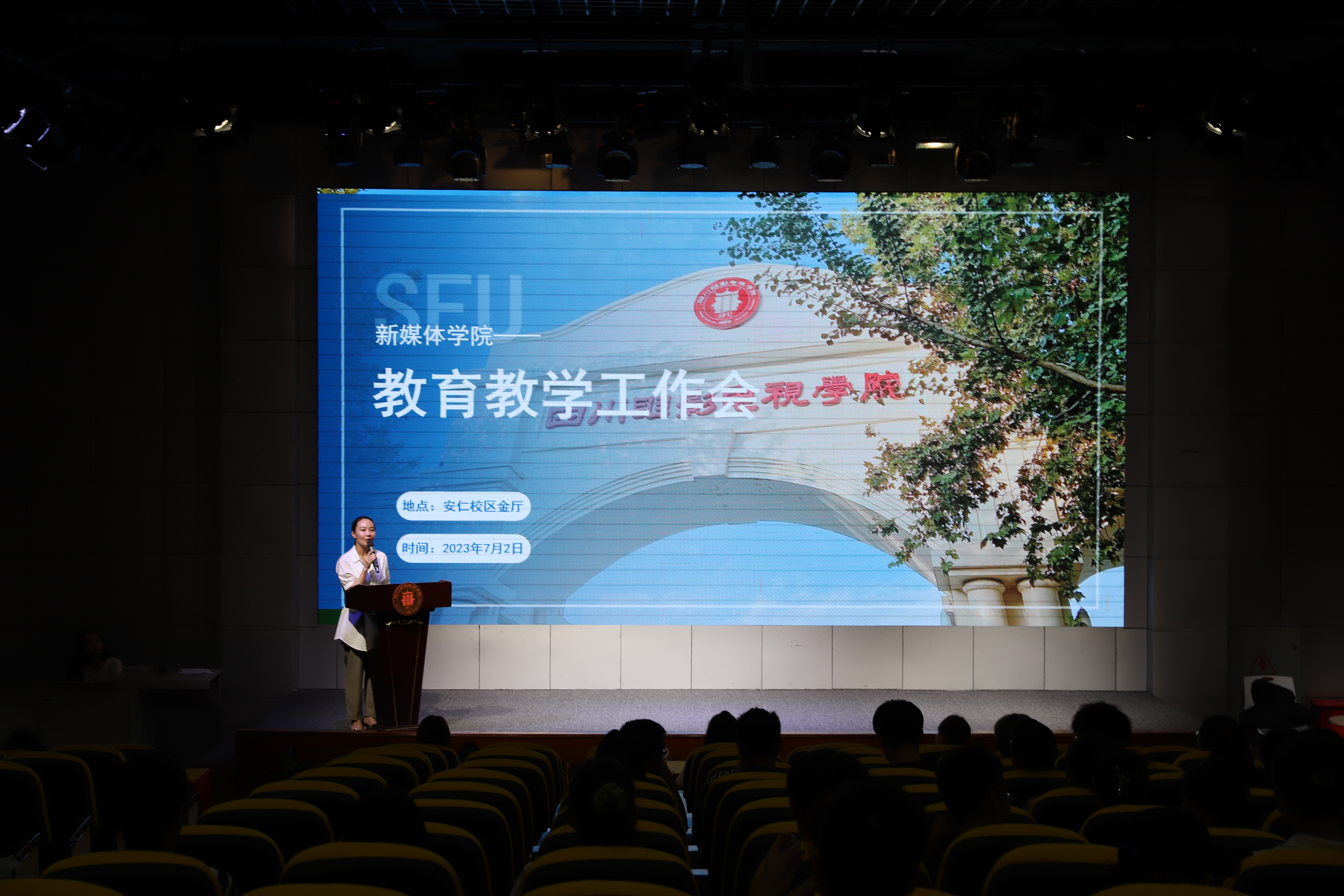 2023年6月5日16:30,新媒体学院在安仁校区第五会议召开教学工作会议。新媒体学院执行院长段晓冉、新媒体学院副院长彭颖、新媒体学院办公室副主任代琳琳及新媒体学院全体教职员工参加会议。会议伊始,新媒体学院副院长彭颖就数字媒体艺术领域内超场域技术的发展与应用,从电影和电视制作、动画创作、虚拟现实(VR)和增强...