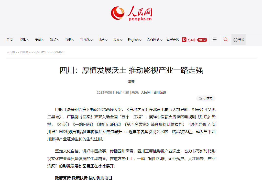 【人民网】四川:厚植发展沃土 推动影视...