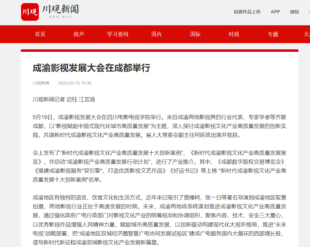 【川观新闻】成渝影视发展大会在成都举行