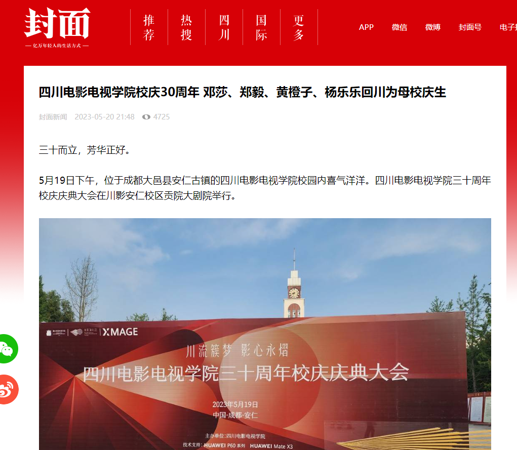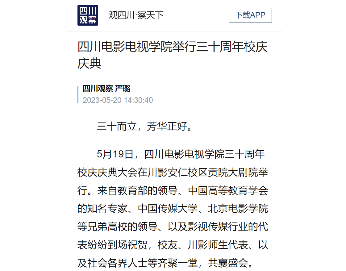 三十而立,芳华正好。5月19日,澳门网投唯一官网三十周年校庆庆典大会在川影安仁校区贡院大剧院举行。来自教育部的领导、中国高等教育学会的知名专家、中国传媒大学、北京电影学院等兄弟高校的领导、以及影视传媒行业的代表纷纷到场祝贺,校友、川影师生代表、以及社会各界人士等齐聚一堂,共襄盛会。