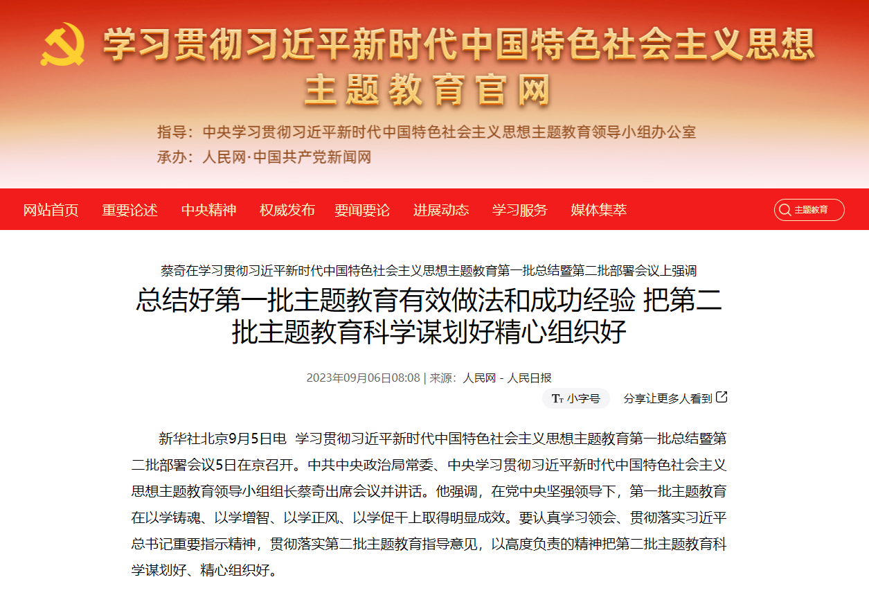 学习贯彻习近平新时代中国特色社会主义思想主题教育第一批总结暨第二批部署会议5日在京召开。